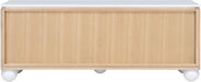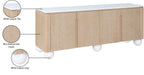 Transform your dining space into a haven of modern elegance with the Cardiff Black Sideboard Buffet. Featuring a rich oak finish contrasted with white lacquer legs and a lacquer top, it creates a sleek and modern aesthetic. Crafted mostly from solid wood with oak veneer made from rubberwood, as well as some parts made from MDF plywood, it boasts natural wood grain variation for added charm. This versatile piece serves as an elegant storage solution and a stylish platform for decorations. With doors designed to conceal cutlery, dishes, napkins, and dining supplies, it ensures your dining area stays organized and clutter-free. Elevate your dining experience with this handsome sideboard buffet that meshes practicality and sophistication effortlessly.