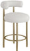 Give your kitchen counter or home bar a fresh face with this Bordeaux boucle fabric stool. This stool features rich boucle fabric upholstery on the curved back and seat, so guests sit comfortably for pancake breakfasts or their favorite spirits. The iron metal frame is durable, tough, and sturdy, so it holds up to long-term enjoyment by family and friends. A brushed brass finish lends the stool an uber modern feel.