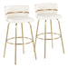 Cinch - 30" Fixed-Height Barstool With Swivel And Round Footrest (Set of 2) - Gold Metal And White Faux Leather