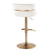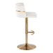 Cinch - Art Deco Adjustable Barstool With Swivel (Set of 2) - Gold Metal And White Faux Leather With Rounded T Footrest