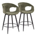 Curvo - 25" Fixed-Height Counter Stool With Swivel And Round Black Metal Footrest (Set of 2) - Black Metal And Green Fabric