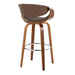 Curvo - 30" Fixed-Height Barstool With Swivel And Round Chrome Metal Footrest (Set of 2) - Walnut Wood And Espresso Faux Leather