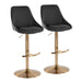 Diana - Adjustable Barstool With Rounded T Footrest (Set of 2) - Gold Metal And Black Faux Leather