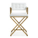 Furnish your kitchen or bar area in contemporary style with the Director stool. The gold solid stainless steel frame provides a sturdy base, while the plush extra deep seat and footrest ensure maximum comfort. The combination of angles and gentle curves gives this stool an eye-catching appearance, while the neutral color allows it to match well with any decor.