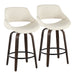 Fabrizzi - 26" Fixed-Height Counter Stool With Swivel And Round Black Metal Footrest (Set of 2) - Walnut Glazed Wood And Cream Noise Fabric