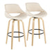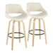 Fabrizzi - 30" Fixed-Height Barstool With Swivel And Round Black Metal Footrest (Set of 2) - Natural Wood And Cream Faux Leather