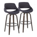 The wide and welcoming seat of the LumiSource Fabrico Barstool beckons one to sit and relax. A curved back and contoured upholstered seat is accented by flared wood swivel legs that add to the stylish yet comfortable design. Available in a variety of upholstery colors, choose the one that suits your space best.