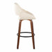 The wide and welcoming seat of the LumiSource Fabrico Barstool beckons one to sit and relax. A curved back and contoured upholstered seat is accented by flared wood swivel legs that add to the stylish yet comfortable design. Available in a variety of upholstery colors, choose the one that suits your space best.
