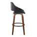 Fabrizzi - 30" Fixed-Height Barstool With Swivel And Round Black Metal Footrest (Set of 2) - Walnut Wood And Charcoal Fabric