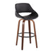 Fabrizzi - 30" Fixed-Height Barstool With Swivel And Round Black Metal Footrest (Set of 2) - Walnut Wood And Black Faux Leather