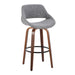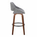 Fabrizzi - 30" Fixed-Height Barstool With Swivel And Round Black Metal Footrest (Set of 2) - Walnut Wood And Gray Noise Fabric