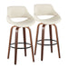 Fabrizzi - 30" Fixed-Height Barstool With Swivel And Round Black Metal Footrest (Set of 2) - Walnut Wood And Cream Noise Fabric