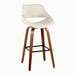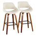 Fabrizzi - 30" Fixed-Height Barstool With Swivel And Square Black Metal Footrest (Set of 2) - Walnut Wood And Cream Noise Fabric
