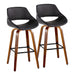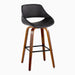 Fabrizzi - 30" Fixed-Height Barstool With Swivel And Square Black Metal Footrest (Set of 2) - Walnut Wood And Black Faux Leather