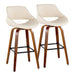 Fabrizzi - 30" Fixed-Height Barstool With Swivel And Square Black Metal Footrest (Set of 2) - Walnut Wood And Cream Faux Leather