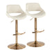 Fabrizzi - Adjustable Barstool With Swivel And Rounded T Footrest (Set of 2) - Gold Metal And Cream Noise Fabric