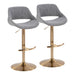 Fabrizzi - Adjustable Barstool With Swivel And Rounded T Footrest (Set of 2) - Gold Metal And Gray Noise Fabric