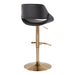 Fabrizzi - Adjustable Barstool With Swivel And Rounded T Footrest (Set of 2) - Gold Metal And Black Faux Leather