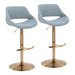 Fabrizzi - Adjustable Barstool With Swivel And Rounded T Footrest (Set of 2) - Gold Metal And Blue Noise Fabric