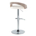 Grotto - Adjustable Barstool - Chrome Metal, Light Gray Wood, White Faux Leather