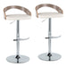 Grotto - Adjustable Barstool (Set of 2) - Chrome Metal, Light Gray Wood, White Faux Leather