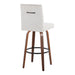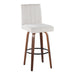 Introducing the Hank Fixed-Height Barstool by LumiSource, a modern masterpiece that combines style and comfort. Featuring a plush tufted cushioned seat with a decorative handle adorning the seat back and a sturdy wood frame, this swivel stool adds a touch of sophistication to any bar area. With its sleek tapered legs and 360-degree rotation, the Hank provides both form and function, making it the perfect seating solution for your home.