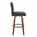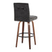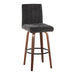 Hannah - 30" Fixed-Height Barstool With Swivel And Round Black Metal Footrest (Set of 2) - Walnut Wood And Black Fabric