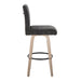 Introducing the Hank Fixed-Height Barstool by LumiSource, a modern masterpiece that combines style and comfort. Featuring a plush tufted cushioned seat with a decorative handle adorning the seat back and a sturdy wood frame, this swivel stool adds a touch of sophistication to any bar area. With its sleek tapered legs and 360-degree rotation, the Hank provides both form and function, making it the perfect seating solution for your home.