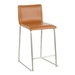 Mara - 26" Counter Stool (Set of 2) - Brushed Stainless Steel, And Camel Faux Leather