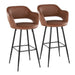 Margarite - 30" Fixed-Height Barstool (Set of 2) - Black Metal And Brown Faux Leather With Square Black Metal Footrest