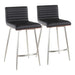 Mason - Swivel Counter Stool (Set of 2) - Stainless Steel, Walnut Wood, And Black Faux Leather