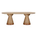 Introducing our Fassa Terracotta Oval Indoor/Outdoor Dining Table- A midcentury marvel seamlessly blending cool vibes with functional design. The rounded and tapered edge adds a hint of retro charm, while the textured faux terracotta top boasts natural shading. Fassa's oval shape and pedestal bases not only enhance its sleek silhouette but also invite friends and family to gather around in style.