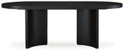 Informed by art deco design, this oval dining table makes a lasting impression in a simply stunning way. Its magnificent curved silhouette and architectural pedestal are enhanced with a rich layered black finish. It’s the contemporary statement piece you’ve been seeking to elevate late-night dinners and full-on family feasts.