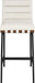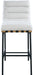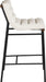 Kick back and relax with a drink in your hand with this Burke counter stool. Featuring soft black vegan leather upholstery and black vegan leather straps, this stool is cozy and stylish. Its matte metal frame provides sturdy support so you can enjoy this stool for years to come. A oak veneer metal dowel is tucked firmly in place beneath the front of the stool, providing extra support and added style.