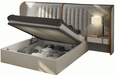 MADE IN SPAIN Finishes: MATT ARENA LACQUER & NOGAL NATURAL WOOD VENEER / FABRIC OKIOS CREMA WIDTH QS BED + 2 NS = 111inch WIDTH KS BED + 2 NS = 131.49inch Headboard : Fabric OKIOS crema