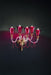 Beautiful and elegant 5 lights wall sconce is part of the Claire Collection which features exquisite lighting pieces made in this case of clear glass and ruby as shades with finish in shiny gold 24K. The whole wall sconce is embellished with Swarovski crystals, pendants and hand application.