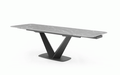 Stunning dining table adorned with a ceramic surface that perfectly emulates the elegant beauty of marble, bringing a touch of refined sophistication to your dining space. Table Top & ext : 12mm ceramic (GREY) Base: Sanded dark grey (SWH2476) powder coated metal Two 16'' Extensions