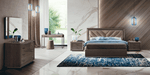 Headboard upholstered in EcoNabuc fabric col. 12 Cat.B. with herringbone motif. The angle junctions between horizontal and vertical profiles are in shining metal anthracite color.