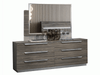 The light and dark grey shades of the pattern create a matching elegant contrast with the trapezium shaped handles in brushed aluminum finish.