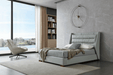Simple design leather Bed in light grey color. Match with any case goods to complete final look.