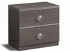This bedroom with strong glamour accents is modernized by the clean, essential lines of the night table and dresser.