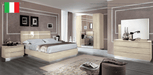 PLATINUM bedroom furniture set in Beige. Modern lines combined with Art Deco’ details. A beveled mirror and wave shaped handles give a typical Made in Italy look to this bedroom. Wood diamond shaped headboard with LED light insert. Optional storage kit with lift mechanism.