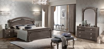 MADE IN ITALY This bedroom with strong glamour accents is modernized by the clean, essential lines of the night table and dresser. The grey and s...