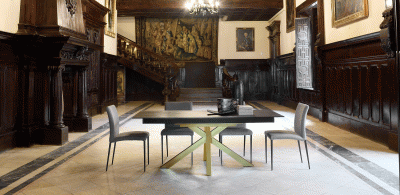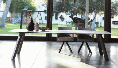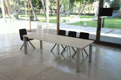MADE IN SPAIN ·EXTENDABLE TABLE. ·SOLID SLIDE EXTENSIONS IN THE SAME MATERIAL THAN THE TOP FOR BOTH SIDES. ·ALUMINIUM FRAME PAINTED AS THE LEGS...