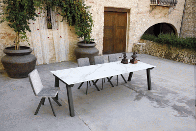 MADE IN SPAIN ·FIXED & EXTENDABLE TABLE · BUTTERFLY EXTENSIONS IN THE SAME MATERIAL THAN THE TOP. ·ALUMINIUM FRAME COLOUR ALUMINIUM, OPTION...