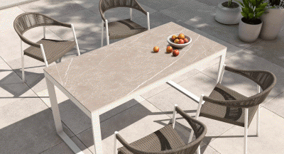ESFMADE IN SPAIN The Millenium Table, made of extruded aluminum, together with the ceramic top, make it a robust table ideal for outdoor and indoor s...