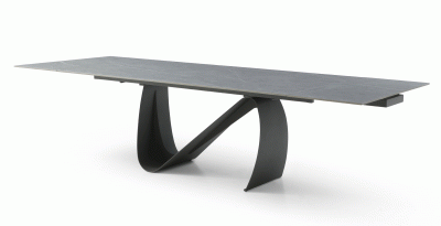 ESFElegant extended ceramic top dark grey dining table. Table Top & Ext: 12MM Base: Sanded dark grey powder coated metal Two 20'' Extensions