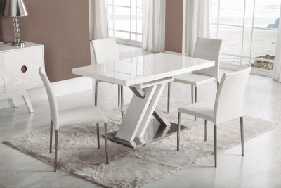 ESFTV Table turning and extendable wood lacquered Color: White High Gloss KD - To be assembled