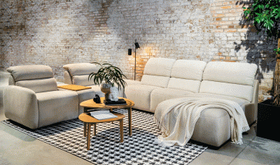 ESFSectional with extended seat function (Using electric sensors) Depth of the seat after unfolding 84cm Fabric: NORDIC 115 (GR. C+)