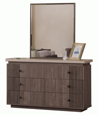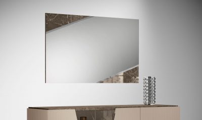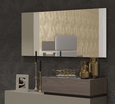 MADE IN ITALY PLATINUM bedroom furniture set in Beige. Modern lines combined with Art Deco’ details. A beveled mirror and wave shaped handles give...